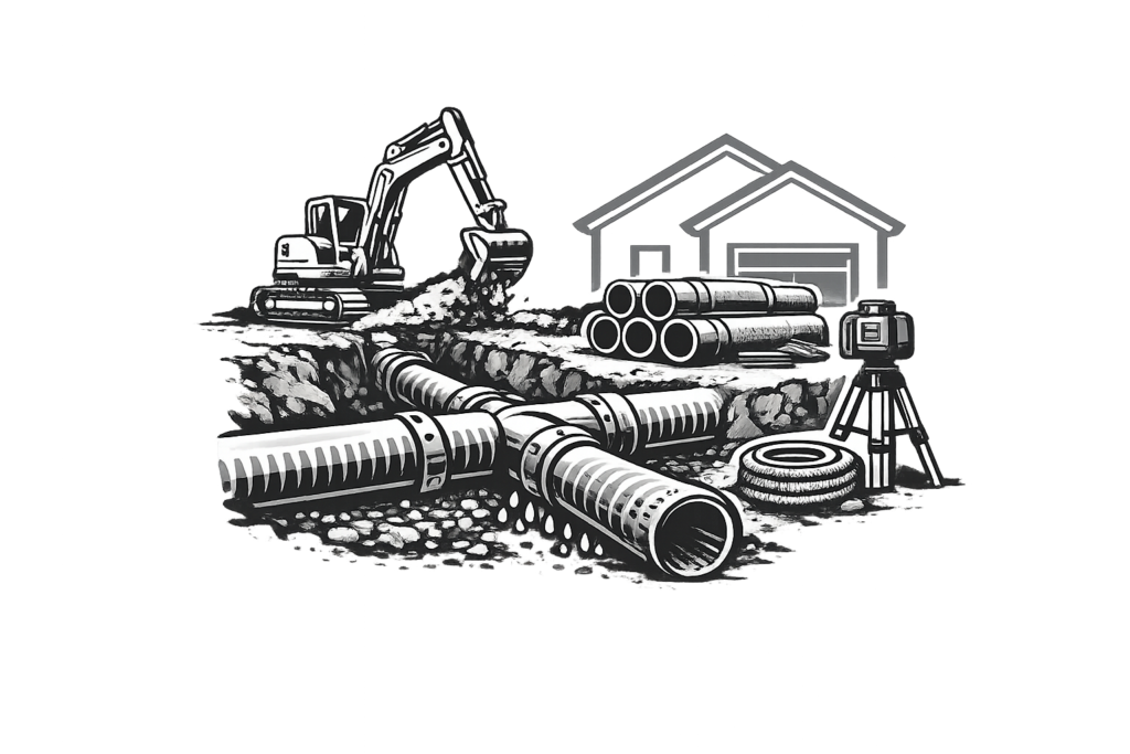 Wir übernehmen fachgerechte Rohrverlegungen für Entwässerung, Drainagen und Versorgungsleitungen und sorgen für eine sichere und langlebige Installation.