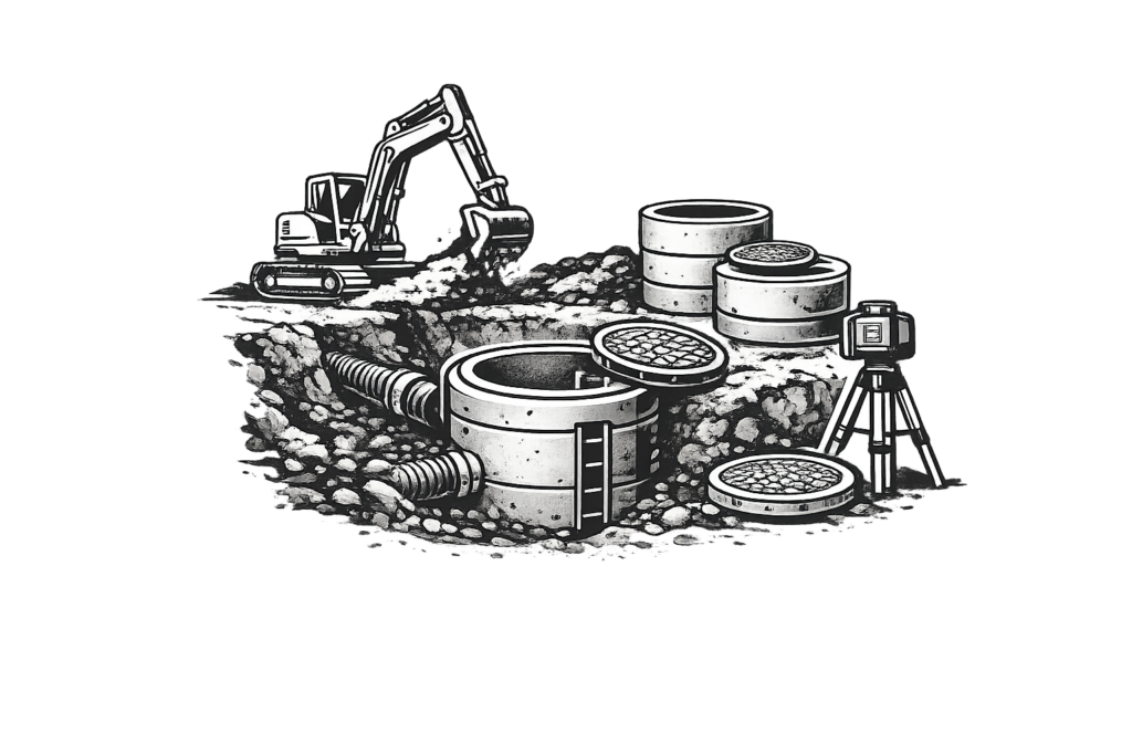 Die Setzung von Schächten für Abwasser- und Versorgungsleitungen gehört ebenfalls zu unserem Leistungsbereich. Dabei achten wir auf eine präzise und normgerechte Ausführung.
