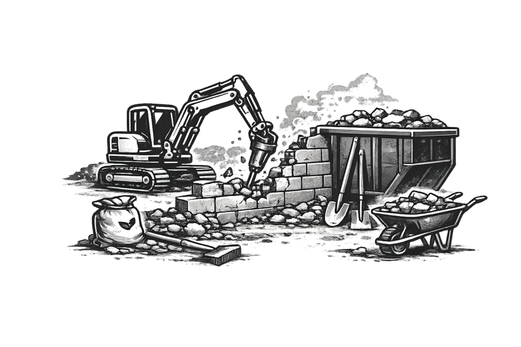 Wir führen Abbrucharbeiten für kleinere Gebäude, Fundamente, Mauern und Betonflächen fachgerecht durch – schnell, sicher und sauber.