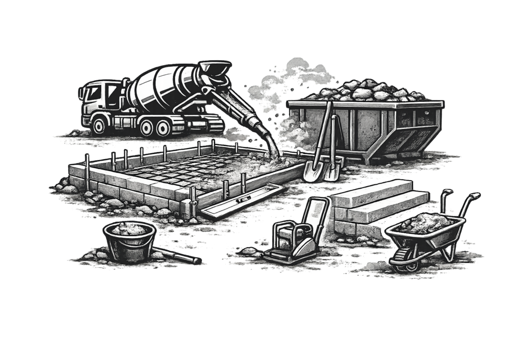 Unsere Betonarbeiten umfassen unter anderem Fundamente, Bodenplatten sowie weitere Betonbauteile für Bauprojekte.